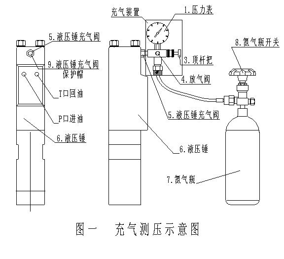 4.3 液压锤充气方法和步骤(见图1):